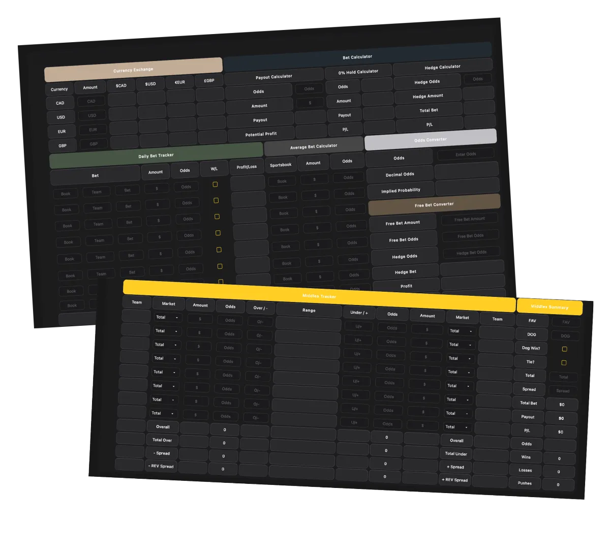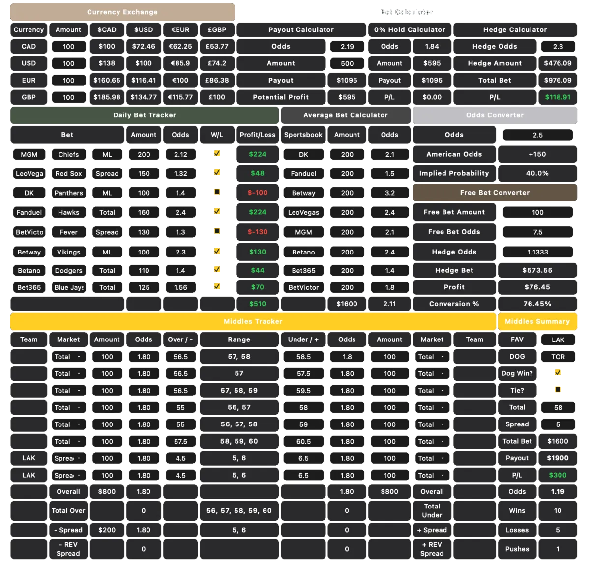 Not at all. Each feature comes with simple, step-by-step instructions. White boxes are for user input, while colored boxes are locked to prevent errors. Even if you’re newer to hedging or tracking bets, the tool walks you through exactly what to do so you can use it confidently.